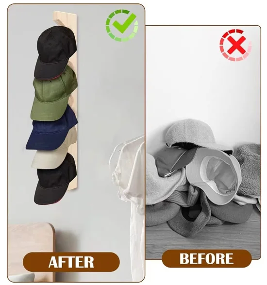 Best-Selling Wall-Mounted Hat Rack Wooden Baseball Cap Storage Rack