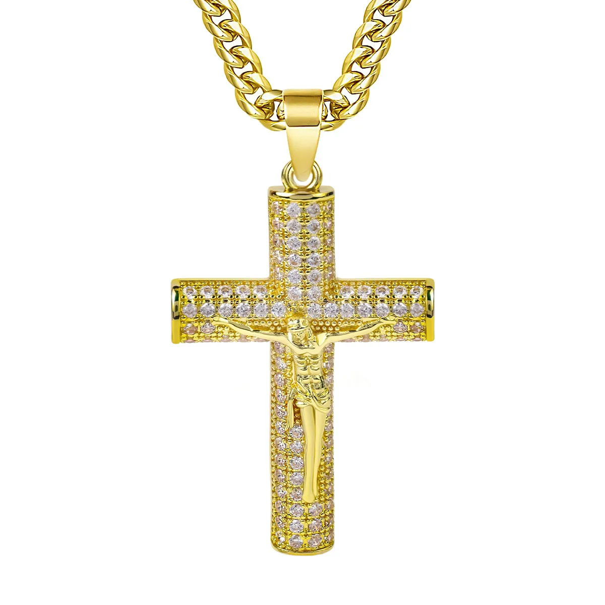 Hiphop Hip-hop Fashion Cross Gold-plated Diamond Cuban Pendant Necklace