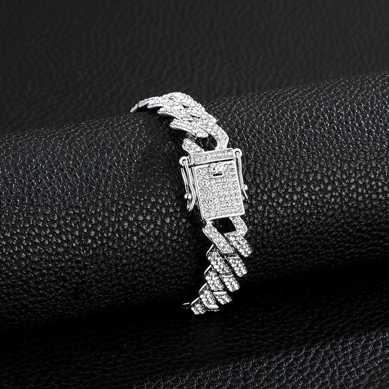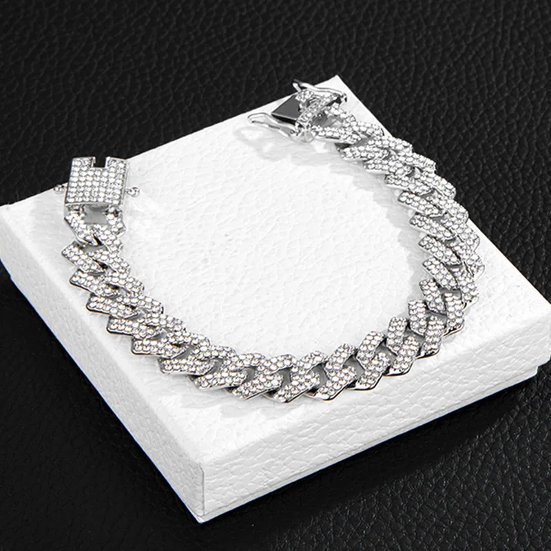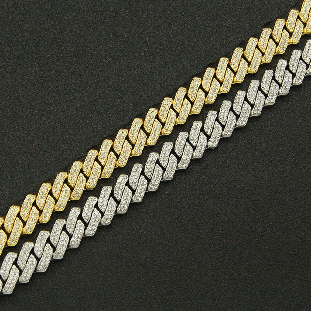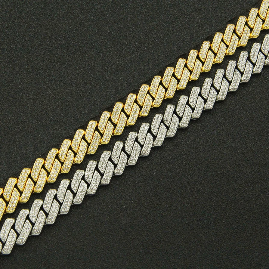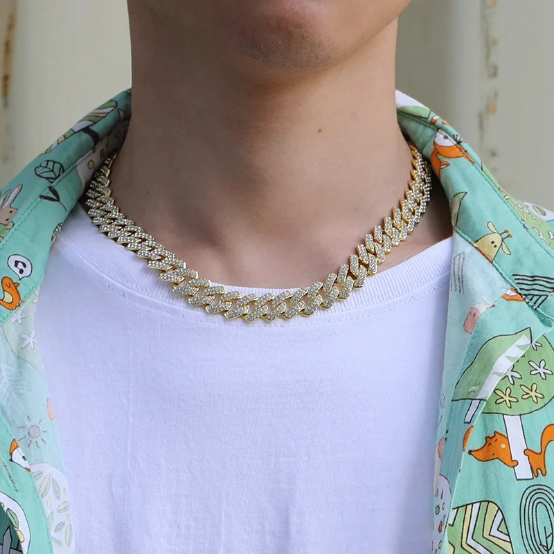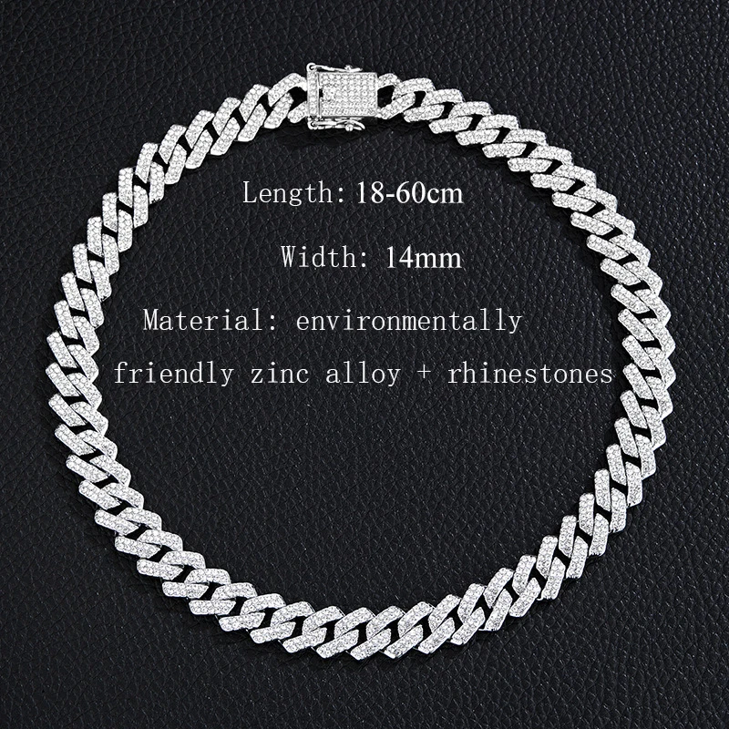 Wholesale Men 14mm Rhinestone Cuban Chain Hip Hop Jewelry Iced Out CZ Diamond Silver Gold Plated Miami Cuban Link Chain Necklace