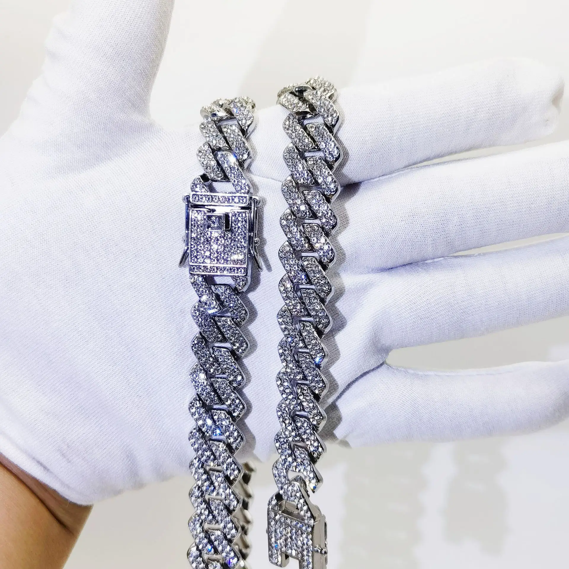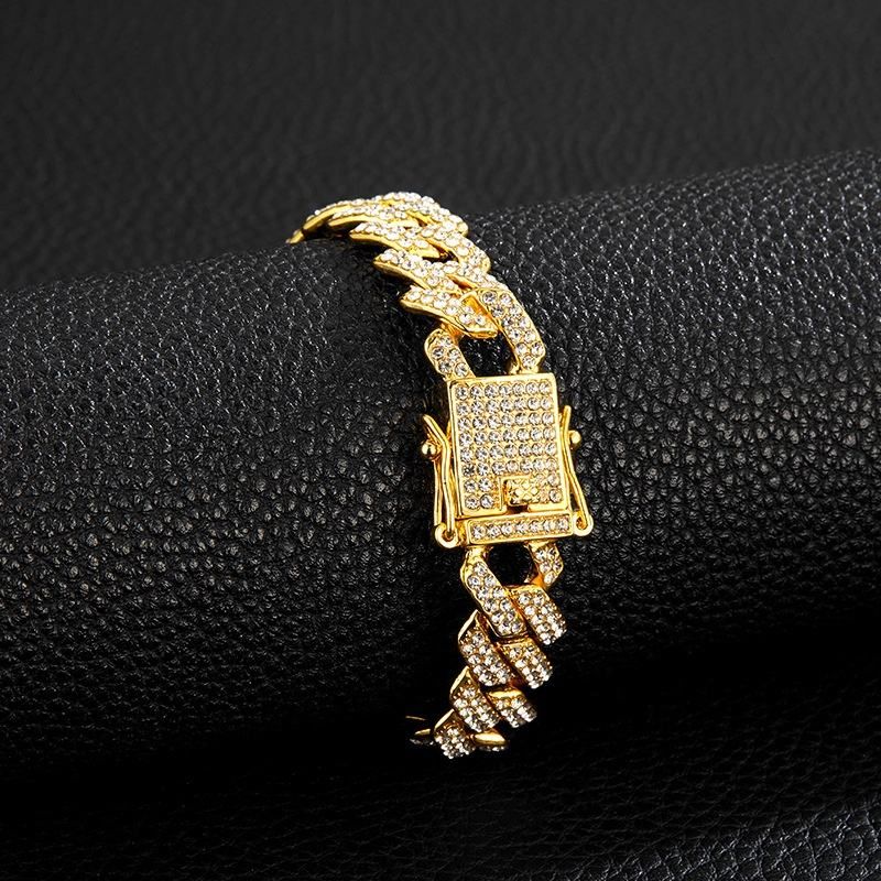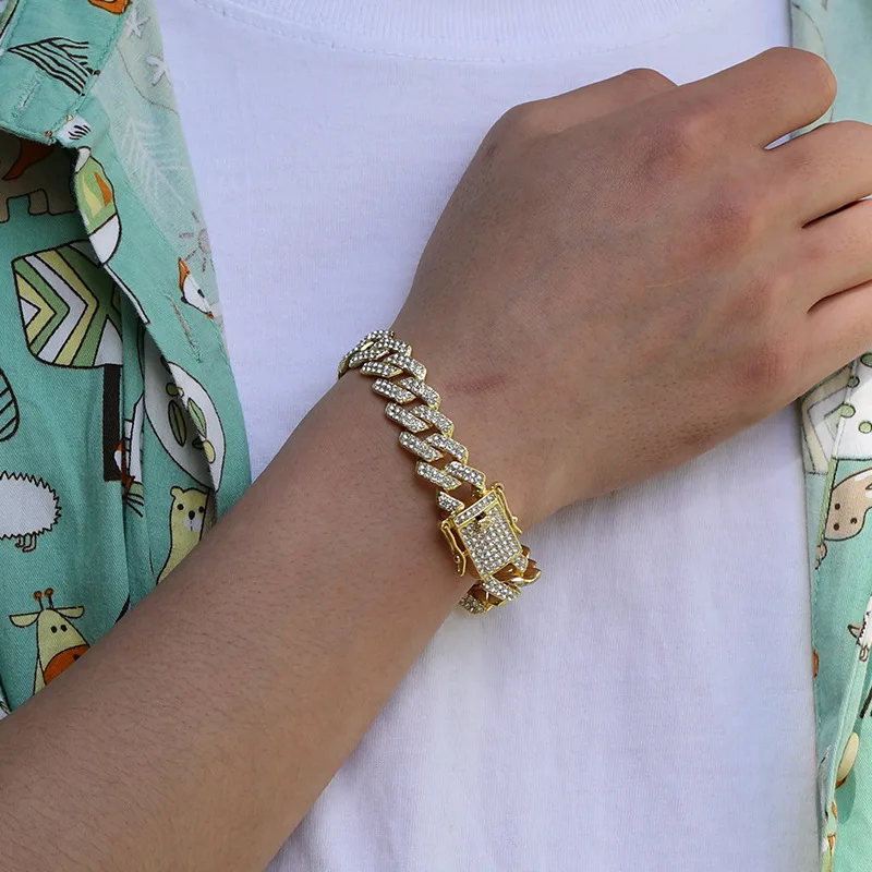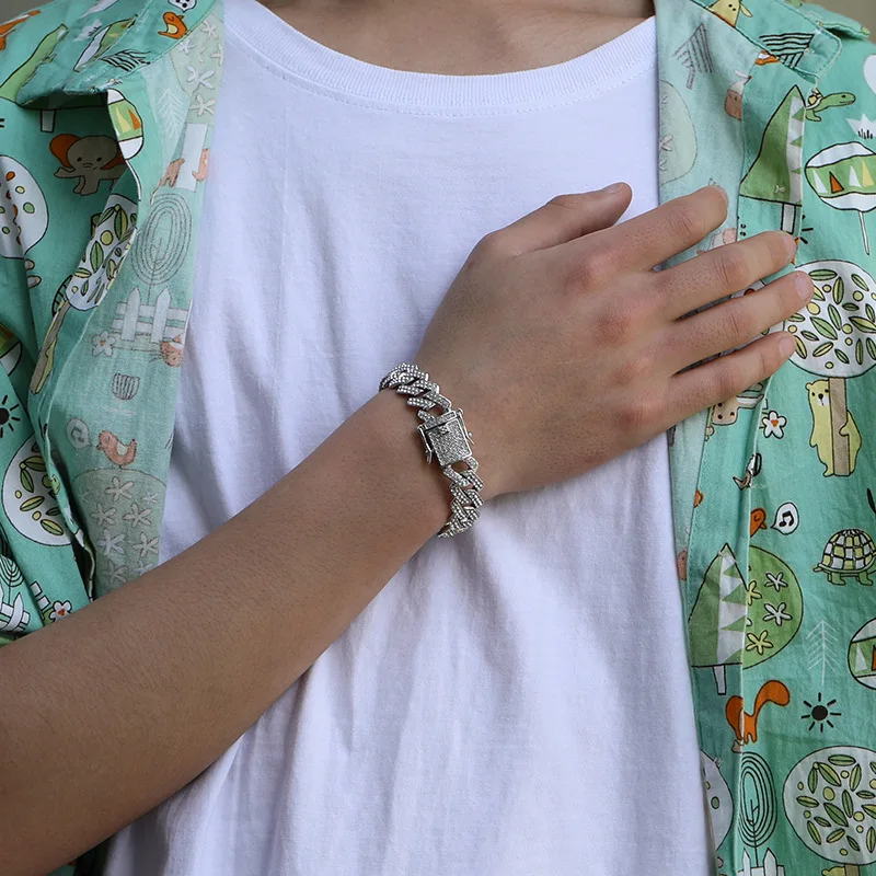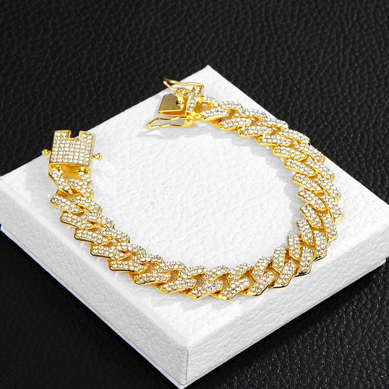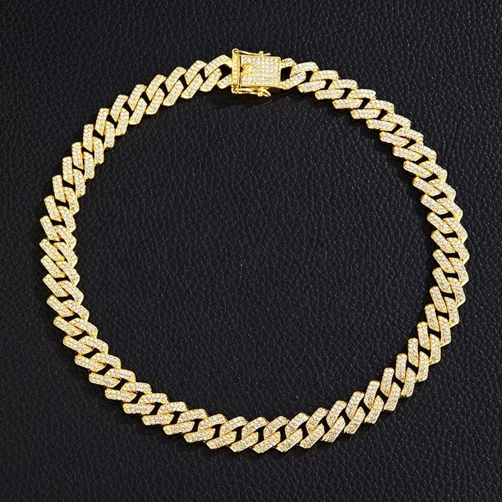 Wholesale Men 14mm Rhinestone Cuban Chain Hip Hop Jewelry Iced Out CZ Diamond Silver Gold Plated Miami Cuban Link Chain Necklace